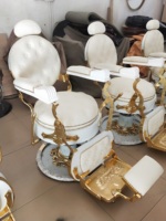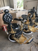 Роскошное парикмахерское кресло из синтетической кожи с гидравлическим насосом, винтажная антикварная откидная салонная мебель из черного золота для парикмахерской